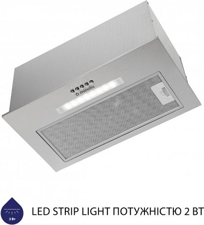 Модель обладнана сучасною LED Strip Light потужністю 2 Вт. Цього достатньо для використання ламп як додаткового освітлення варильної поверхні.