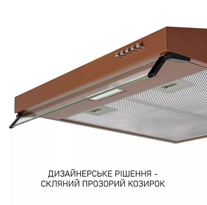 Елегантна Minola HPL 633 BR в коричневому кольорі – це стримане поєднання технологічності і вишуканості. Вона підкреслює тепло атмосфери у приміщенні, акцентуючи природність та елегантність кухонного простору. Витяжка працює в режимах відведення та рециркуляції, має потужні двигуни, LED-підсвітку, низький рівень шуму і високу ефективність очищення повітря.