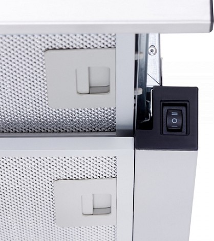 Механічна панель управління дуже проста та інтуїтивно зрозуміла. На ній розташовані перемикачі для увімкнення/вимкнення витяжки, освітлення та перемикання швидкостей. Активувати потрібну функцію можна одним натиском. Механічні перемикачі управління найбільш надійні та довговічні.
