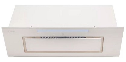 Витяжка повновбудована, потужність 1250 м3 / год. Ширина: 900 мм. колір - білий (фасад - скло). Управління сенсорне. 4 швидкості. Дисплей. Таймер на 15 хв. Пульт ДУ. Освітлення: LED-смуга 10 Вт. Алюмінієвий фільтр (8 шарів). Режими роботи: Відвід / рециркуляція. Рівень шуму: 67 Дб. Італійський мотор.