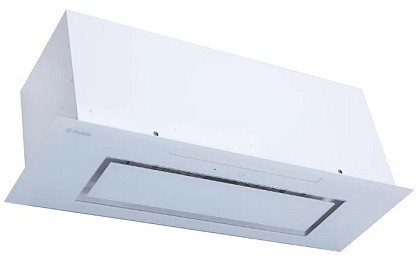 Витяжка повновбудована, потужність 1250 м3 / год. Ширина: 900 мм. колір - білий (фасад - скло). Управління сенсорне. 4 швидкості. Дисплей. Таймер на 15 хв. Пульт ДУ. Освітлення: LED-смуга 10 Вт. Алюмінієвий фільтр (8 шарів). Режими роботи: Відвід / рециркуляція. Рівень шуму: 67 Дб. Італійський мотор.