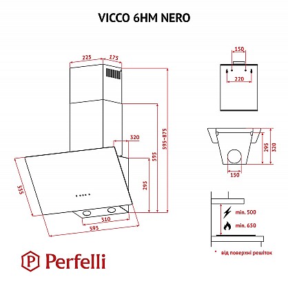 ДЕКОРАТИВНА ПОХИЛА ВИТЯЖКА PERFELLI VICCO 6HM NERO