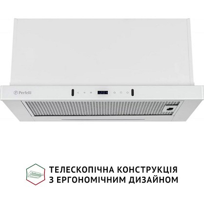 Телескопічна кухонна витяжка PERFELLI ISEO 6PWX BIANCO має ергономічні властивості, тому дозволяє раціонально використовувати простір у зоні над варильною поверхнею.