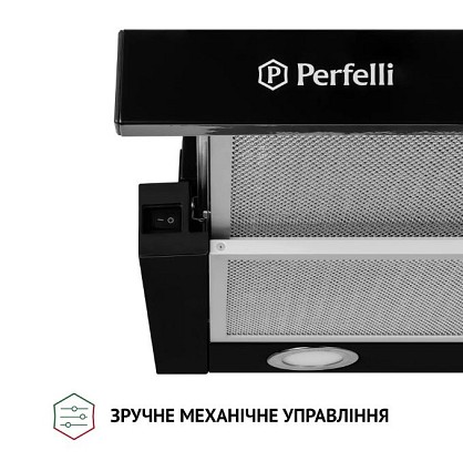 Телескопічна кухонна витяжка Perfelli TL 6212 BL 700 LED має ергономічні властивості, тому дозволяє раціонально використовувати простір у зоні над варильною поверхнею. Конфігурація моделі включає: