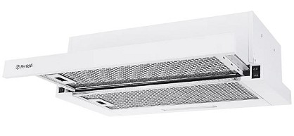 Телескопічна витяжка Perfelli TL 6316 WH 700 LED спроектована таким чином, що більша частина її конструкції ховається в навісну кухонну шафу. Видимою залишається тільки висувна панель, яка задіюється під час роботи і виглядає дуже стильно. Цей тип витяжки ідеально впишеться в сучасний інтер'єр. Ширина приладу складає 60 см - це універсальний розмір, який підходить для розміщення над варильною поверхнею приблизно такого ж розміру.