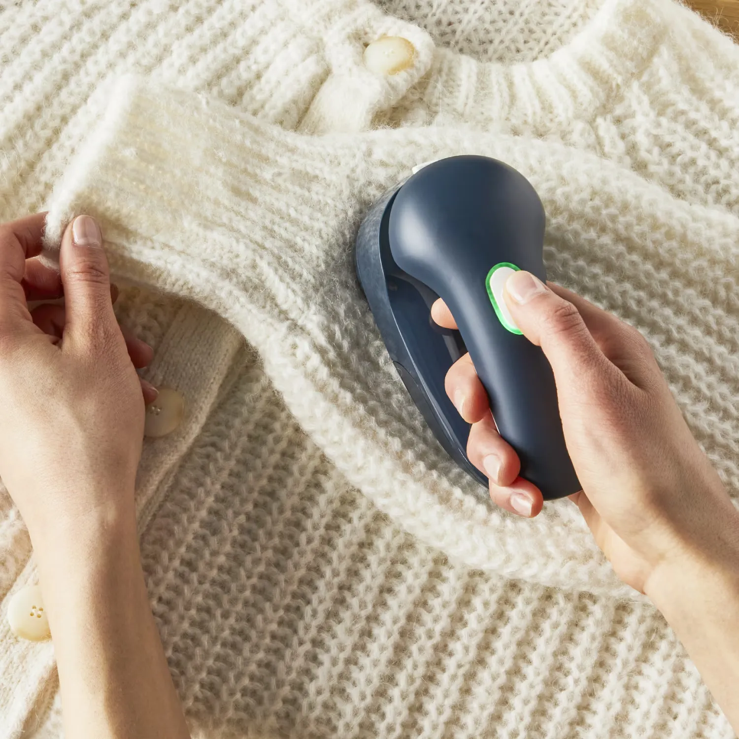 Ця машинка для видалення катишків має зручний дизайн та проста у використанні. Завдяки ергономічній формі пристрій ідеально лежить у руці, а керування лише однією кнопкою полегшує контроль над процесом.