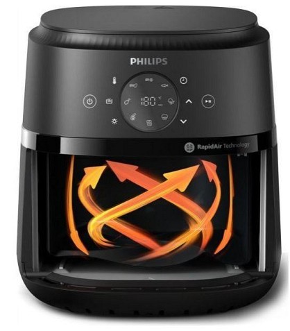 - Компактна конструкція ідеально підходить для будь-якої кухні – як великої, так і малої. У 4,2-літрову мультипіч поміщається до 500 г картоплі фрі чи овочів або 6 курячих гомілок.