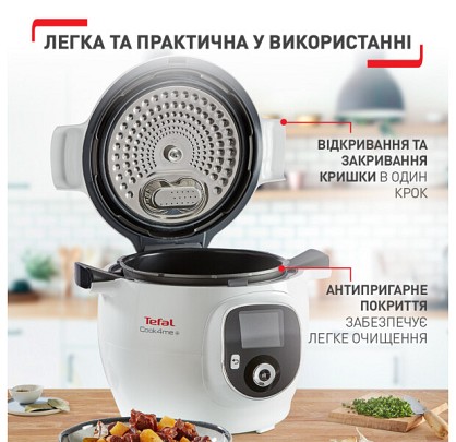 Мультиварка-скороварка Tefal CY851130 створена, щоб зробити життя максимально комфортним. Три температурних рівня забезпечують індивідуальний підхід до рецептів. Використовуйте таймер відстрочки старту, коли блюдо має бути приготовлено до певного часу. Автопідігрів – краще рішення, якщо немає можливості відразу приступити до обіду, таймер вкаже скільки часу залишилося до кінця процесу приготування.