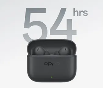 1. Навушники та зарядний кейс забезпечують 54 години відтворення аудіо в сумі. Навушники забезпечують 12 годин відтворення аудіо. Результати тестів заряджання та батареї ґрунтуються на внутрішніх лабораторних тестах OPPO (50% гучності та 25°C). Реальний час роботи батареї навушників може відрізнятися залежно від індивідуальних звичок використання, таких як рівень гучності, тип аудіоконтенту, зовнішні фактори та використовувані функції. Крім того, ефективність батареї може зменшуватися з часом та з повторними циклами заряджання. Тому реальна частота заряджання може відрізнятися у кожної особи.