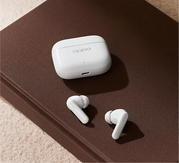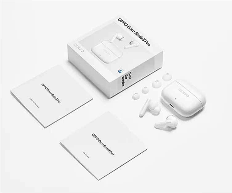 OPPO Enco Buds3 Pro мають компактний та портативний дизайн з легким корпусом, що ідеально прилягає до вух, забезпечуючи комфортне носіння протягом усього дня без дискомфорту.