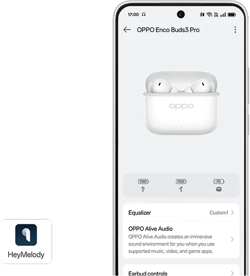7. OPPO Enco Buds3 Pro підтримує персоналізований еквалайзер на телефонах OPPO з ColorOS 12.0 або новіших версій. Для налаштування цієї функції перейдіть до "OPPO Enco Buds3 Pro > Функції навушників". Користувачі ColorOS 12.0 та новіших версій повинні оновити додаток "Бездротові навушники" до останньої версії через App Store. Інші користувачі з моделями на iOS або Android 7.0 та новіших можуть завантажити та встановити додаток HeyMelody для використання цієї функції.