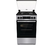 Комбінована плита ARDESTO Elegance FSCF-C606ST у стильному корпусі з нержавіючої сталі поєднує газову поверхню та електричну духову шафу. Поверхня з чавунними решітками на чотири конфорки, вкрита скляною кришкою. Клас захисту I. Автоматичне запалювання в ручці. Функція газ-контроль. Емальована духова шафа класу енергоефективності B. Об’єм духової шафи 66 л, напрямні – знімні, наявне підсвічування. Функція конвекції. У комплектації – решітка та стандартне деко. Відкидне нижнє відділення. Розмір (в × ш × г) 89,1 × 59,7 × 61,9 см. Вага 41,2 кг.