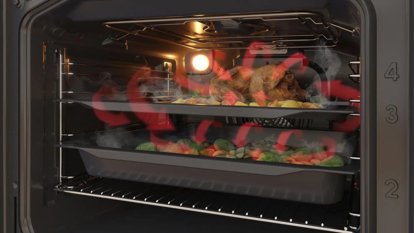 Духовка стала ще просторішою, а стеля більш склепінчастою, повторюючи конструкцію традиційної дров'яної печі. Повітря вільно циркулює, обволікає продукт з усіх боків, роблячи його ніжним та соковитим всередині і неймовірно хрустким зовні. У камері об'ємом 71 літр з утопленими бічними стінками повітря розподіляється ще краще, тому по всьому простору духовки підтримується однакова температура, що забезпечує рівномірне пропікання. Примусова циркуляція повітря створює професійні умови для приготування як на одному, так і на декількох рівнях одночасно.