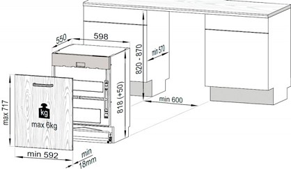 Кошик для столових приборів – зручна річ, але іноді він заважає поставити велику каструлю на нижню полицю. Висувний кошик для столових приборів вирішує цю проблему, адже його можна легко зсунути ліворуч або праворуч, щоб звільнити місце для великого посуду.
