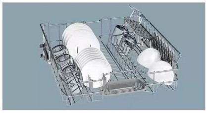 Посудомийна машина Siemens SN615X03EE має конструкцію, що вбудовується, і відноситься до класу енергоспоживання А++. Вона впорається з миттям 14 стандартних комплектів посуду, для чого потрібно 9,5 літрів води. Залежно від типу та ступеня забрудненості посуду для якісного миття слід вибрати одну з 6 вбудованих автоматичних програм, причому кожна може бути триразово прискорена функцією VarioSpeed Plus. Поліпшити результат роботи моделі допоможе опція попереднього полоскання (замочування) і вбудований фільтр, що самоочищається. Щоб раціонально розмістити посуд різних розмірів, у тому числі великих габаритів, у верхньому кошику пристрою передбачено можливість регулювання розміщення полиць за рівнями. Функція відкладеного старту від 1 до 24 години дає можливість зручно планувати свій час.