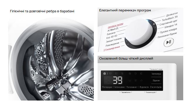 AI DD працює на 3 програмах прання: «Бавовна», «Змішані тканини», «Повсякденне прання».