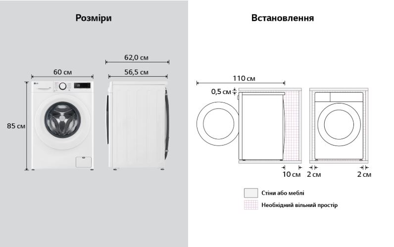 **Маєтсья на увазі збільшене максимальне завантаження при пранні з 9 кг до 11 кг для пральних машин LG у стандартному сегменті з глибиною корпусу від 50 см до 60 см.