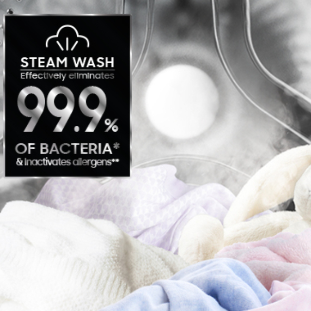 * На основі протоколу випробувань режиму очищення парою, які проводила компанія Intertek. Видаляє 99.9% золотистого стафілокока й кишкової палички. Окремі результати можуть бути різними.