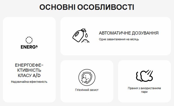 Завдяки постійному вдосконаленню енергоефективності ви можете отримати всі переваги сучасної пральної та сушильної машини, яка споживає значно менше електроенергії. Це означає менші рахунки за електроенергію, екологічність і сталий розвиток.
