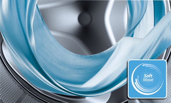 Технологія SoftMove піклується про одяг і її кольорах з самого початку циклу. Спеціальні алгоритми обертання барабана, в кожній з 14 програм, гарантують ідеальну безпеку як для ваших джинсів, так і для ніжних шовкових суконь.