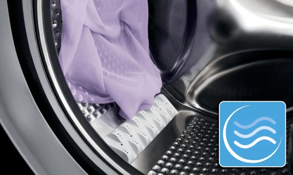 Завдяки спеціальному алгоритму обертання пральна машина рівномірно розподіляє речі всередині барабану, внаслідок чого пральний засіб проникає глибоко у тканину та видаляє забруднення більш ефективно.