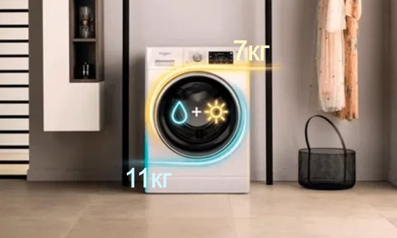 Внутрішній простір розрахований на 11 кг білизни для прання і 7 кг для сушіння