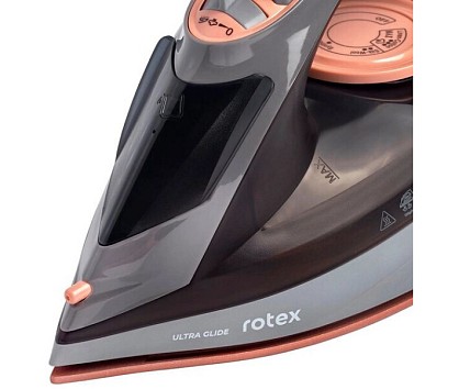 Праска Rotex - ідеально ковзає по будь-якій тканині, відпрасовуючи навіть найсильніші складки. Для відпарювання можна використовувати просту водопровідну воду. Резервуар для води цієї моделі вміщує 220 мл води. А потужність самої праски становить 2400 Вт. З його особливостей варто виділити матеріал підошви: Nano-Ceramic.