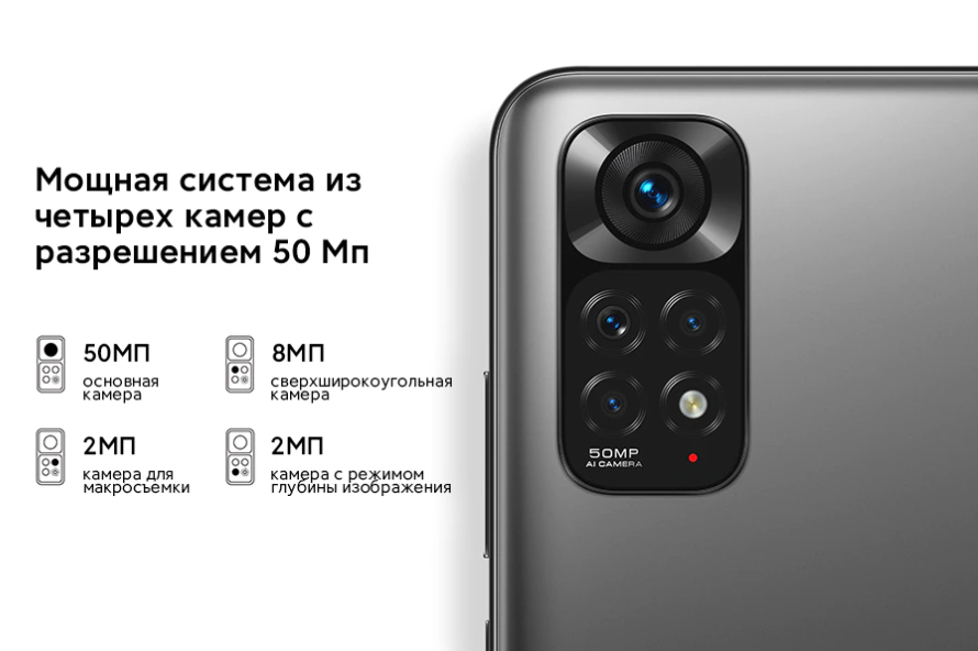 50MP Основна камера | 8MP ультра-ширококутний фотоапарат 2MP макро камери | 2MP Глибина камери