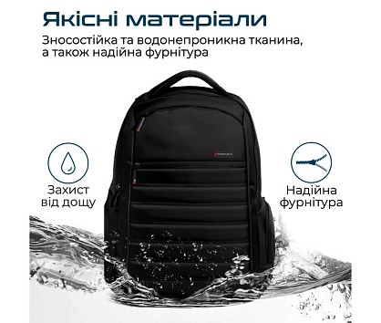 - Стильний дизайн: Привабливий зовнішній вигляд в класичному чорному кольорі, рюкзак ідеально впишеться в урбаністичний стиль життя.