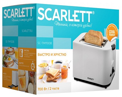 Деякі характеристики Потужність Scarlett SC-TM11008 = Потужність 700 Вт. Він має два відділення на два тосту. Також в ньому є 6 режимів обсмажування. Різноманітність не буває зайвою, чи не так? Його корпус не нагрівається, що провокує запах пластика. Відмінна довжина проводу дозволить вам ставити його там, де буде найбільше зручно. Знімний піддон для крихт легко миється. Термоізольований корпус, відділ для зберігання шнура. Важить тостер всього лише один кілограм. Це бюджетний і робочий тостер, яким ви будете дуже задоволені.
