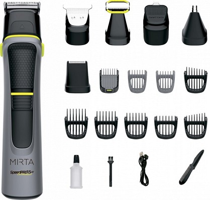 2 скошені насадки (для підстригання волосся за вухами) Широка насадка для стрижки волосся Насадка для стрижки бороди Насадка для гоління Боді-грумер з силіконовими вставками Тример для контурів Тример для носа та вух