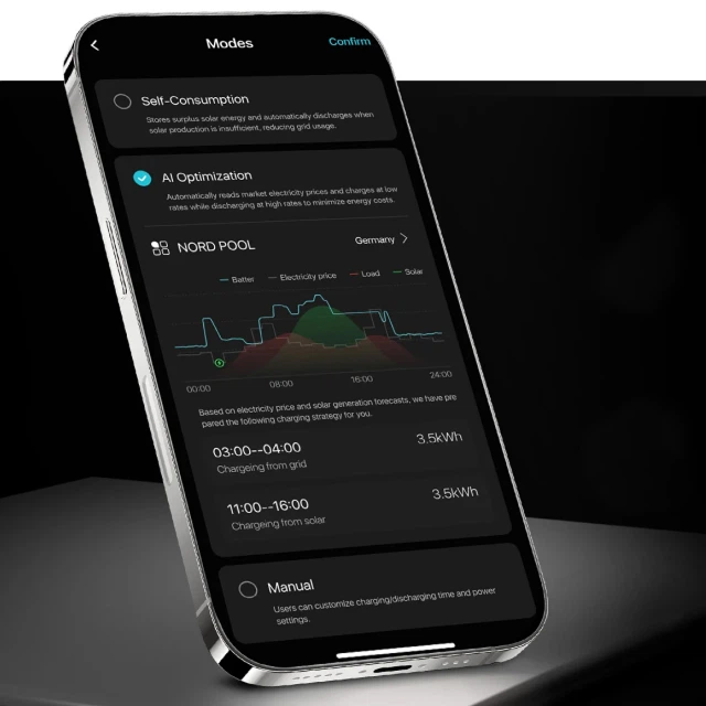 Застосунок MARSTEK дозволяє легко перемикатися між режимами AI-оптимізації та ручного керування. Venus E Gen 3.0 підлаштовується під ваш енергетичний стиль — повна автоматизація, інтелектуальний відгук або точне ручне налаштування.